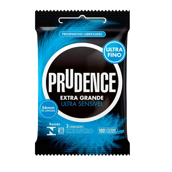 Preservativo com 56mm de largura. Embalagem com 3 unidades.
